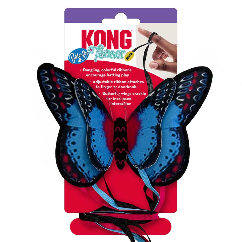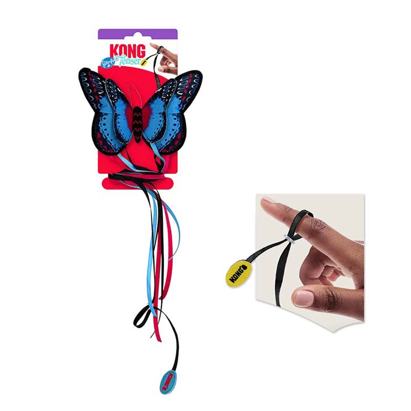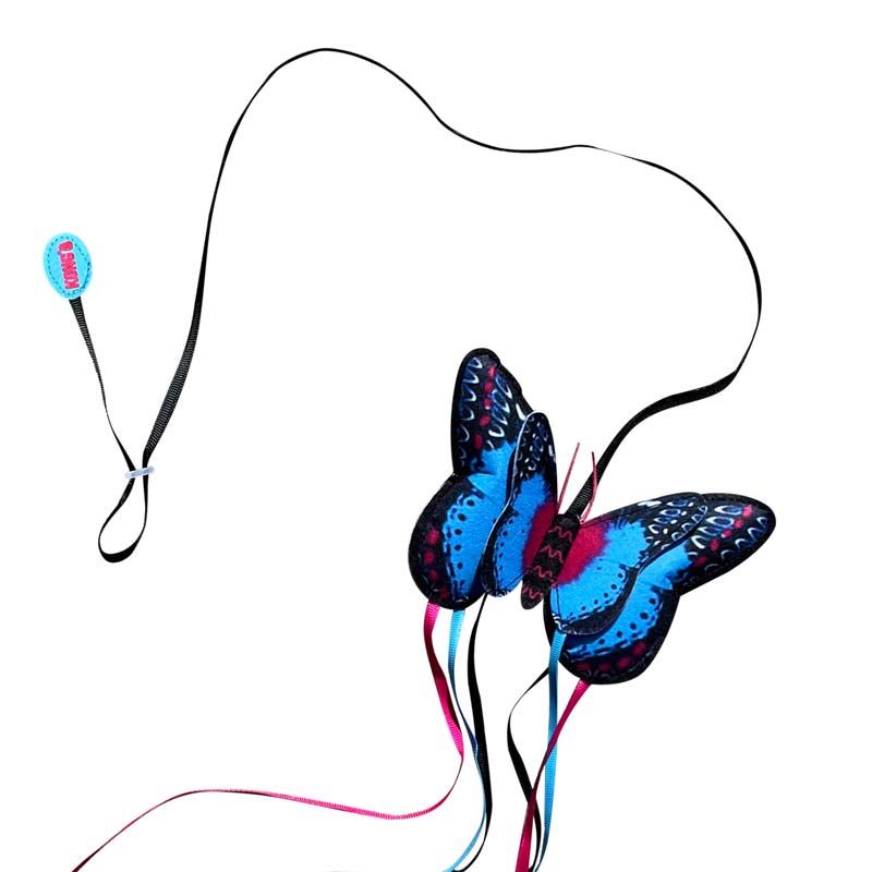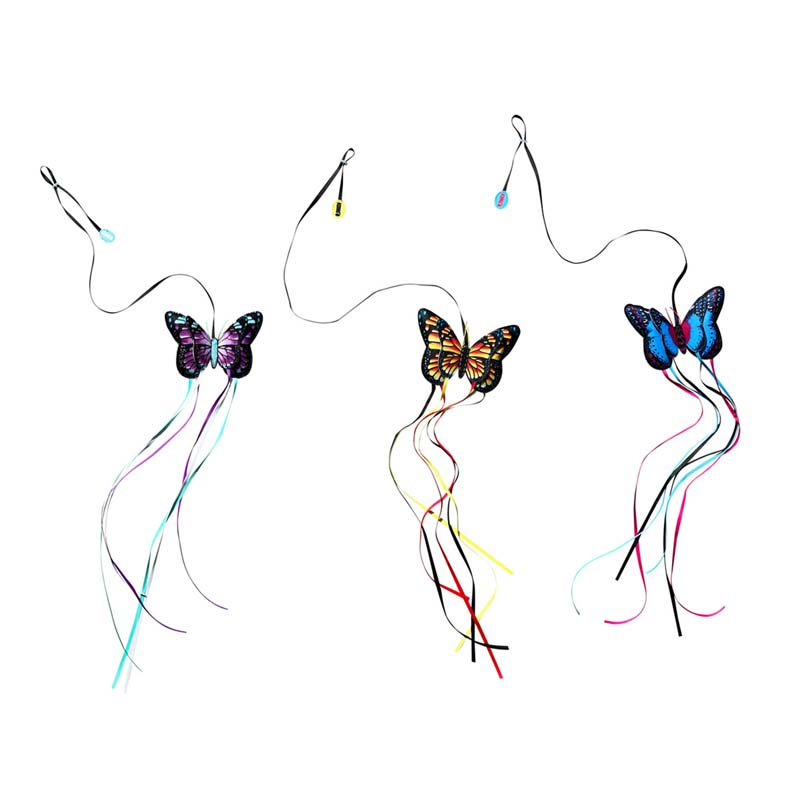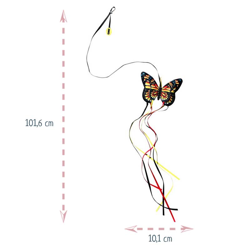 Le Cat Teaser Butterfly est un papillon tout léger, prolongé d’un côté par une fine bande dotée d’une boucle pour votre doigt, et l’autre côté par des rubans colorés en tissu.